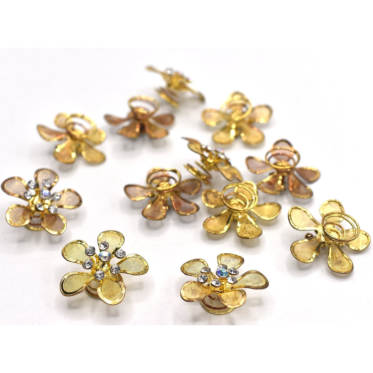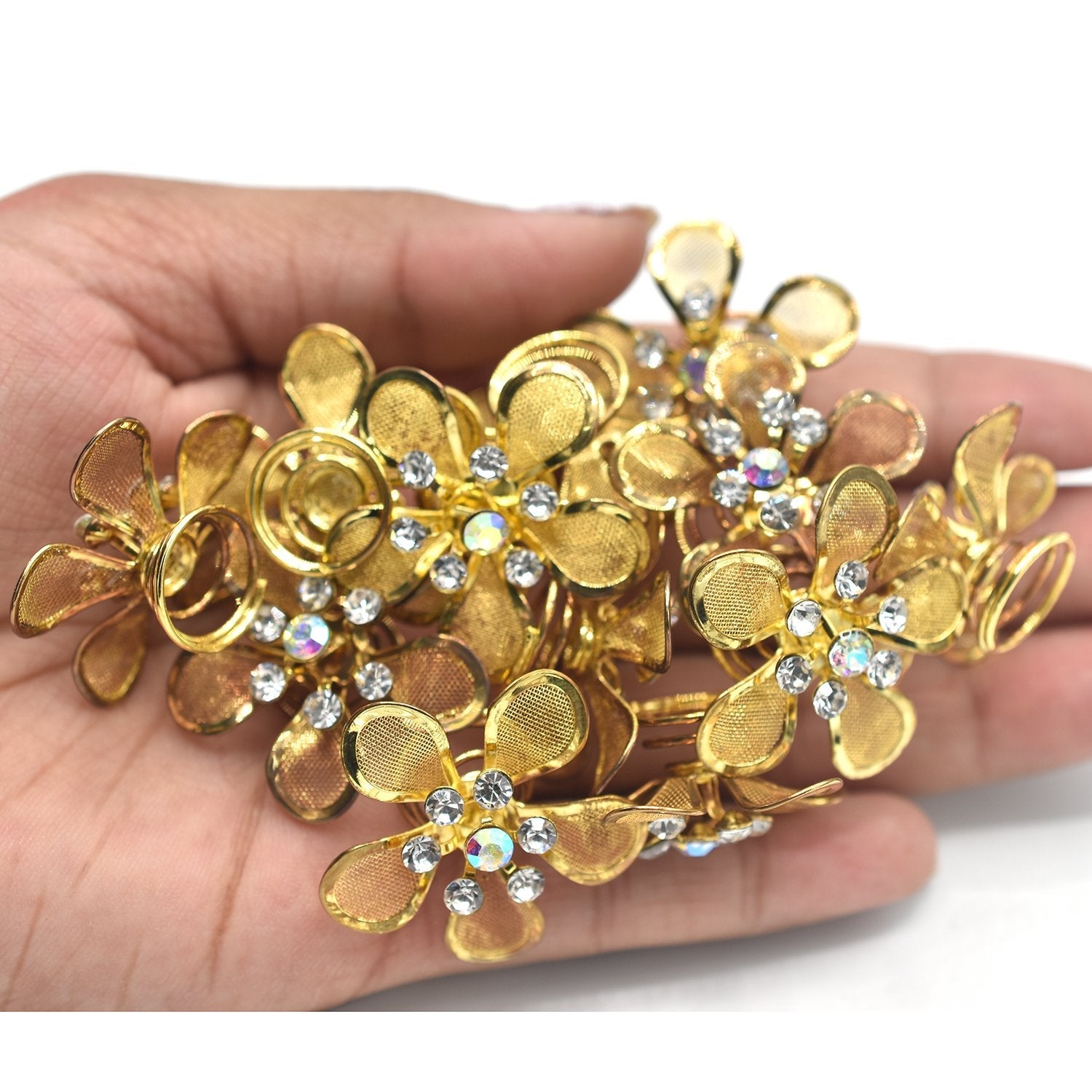 - 12 Pcs Hot Hair Styling Tools Wedding Hair Pins Crystal Pearl Flower Bridal Hairpins Bridesmaid Hair Clips Accessories For WomenNoble and elegant,girls necessary stuffConcise style,classical jokerGo well with any color dress,demitoiletSuitable for wedding,graduation party,show,birthday party,etc.Condition: 100% Brand New and High QualityType: Hair PinsMaterial: Alloy & Rhinestone & PearlColor: golden Length:about 7 cmPackage Include: 12 pcs/lot Wedding Hair Pins