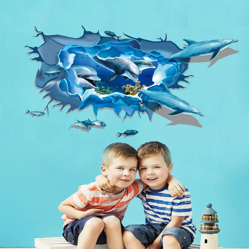 Cartoon Dolphin Fish Swimming Wall Stickers xh4176