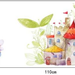 A magical decoration for little girls who love winged fairies. The picture consists of a 60 cm tall fairy house with turrets and flowers around it and one fairy tale fairy with wings.