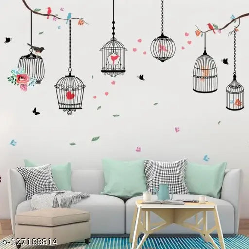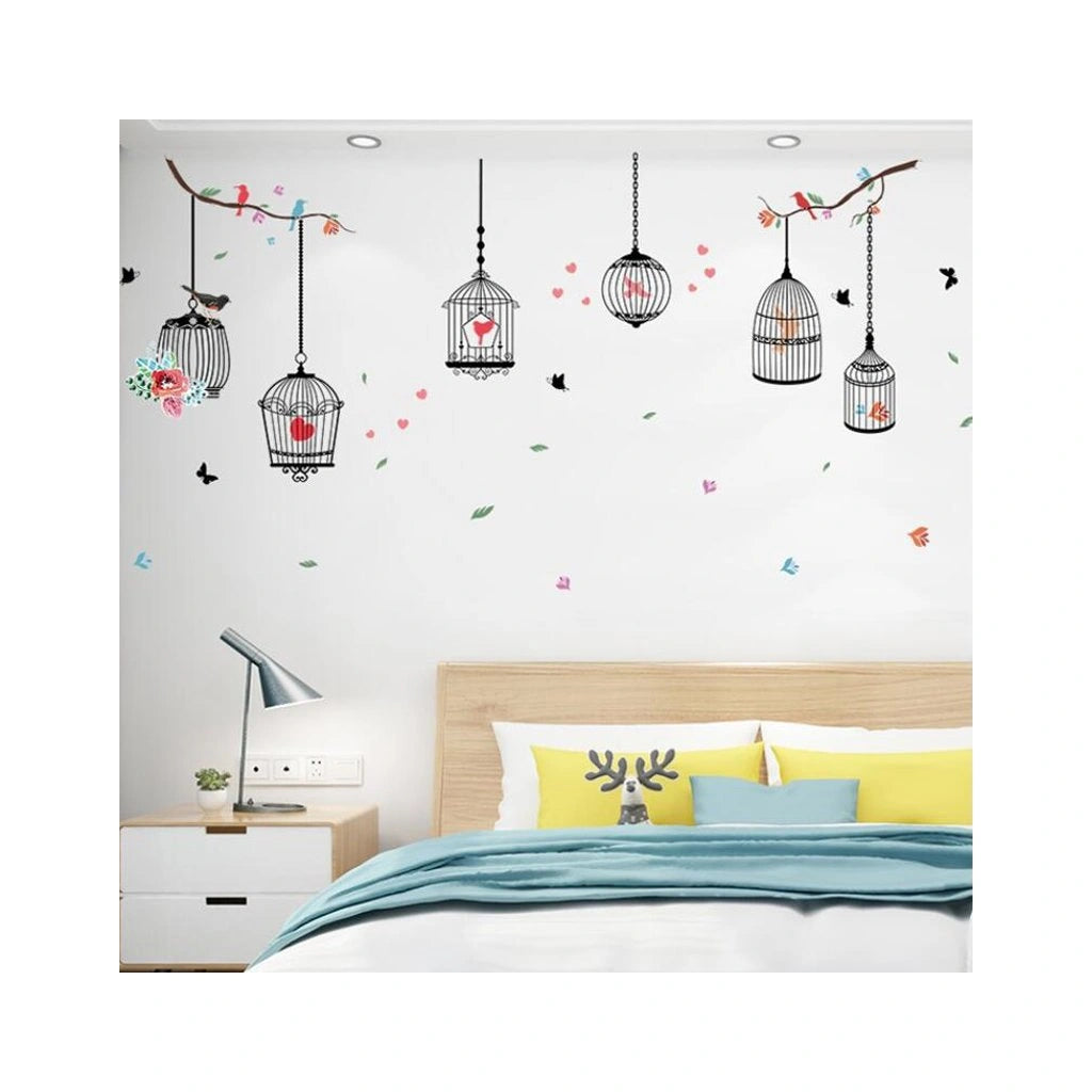 PG888 Girl’s Walls Sticked with Bird Cages under Street Lamps and Loving Elk Composite Decoration Stickers